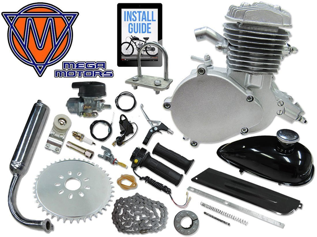 Each Mega Motors bicycle engine kit comes with an easy-to-follow installation guide that takes you step by step through installing, adjusting, and fueling your brand new engine kit for the ride of your life.