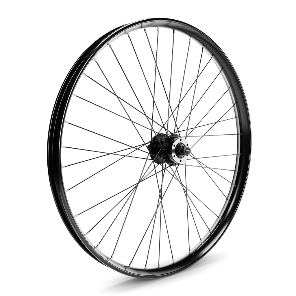 Our 26" x 1.25" 12 gauge wheel with 36 spokes is a tough wheel with strong spokes to match! Perfect for your next motorized bike wheel, our strong steel wheel accepts standard 26" wheel brakes, such as the Sunlite 26" Front Brake Set.