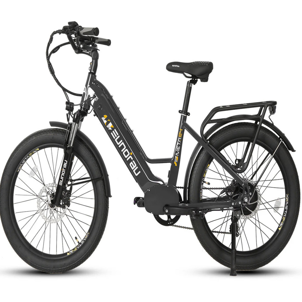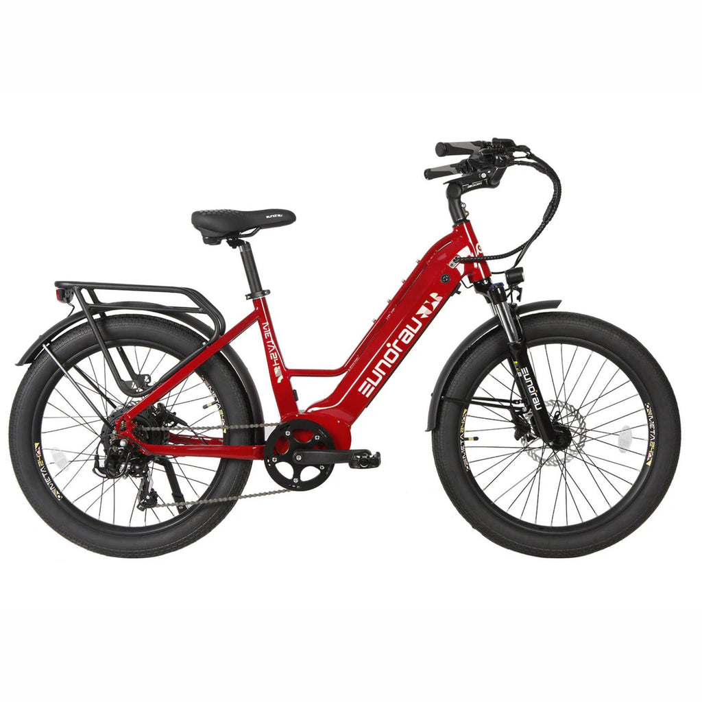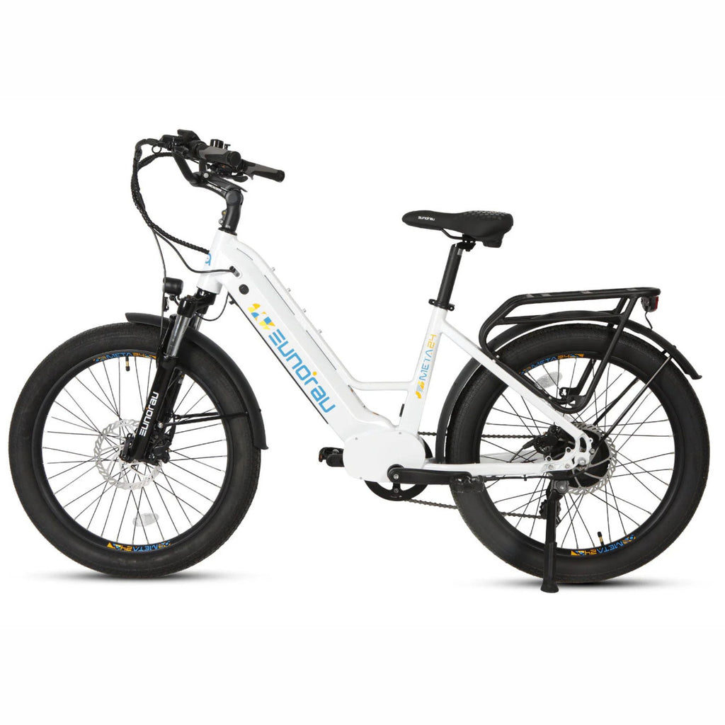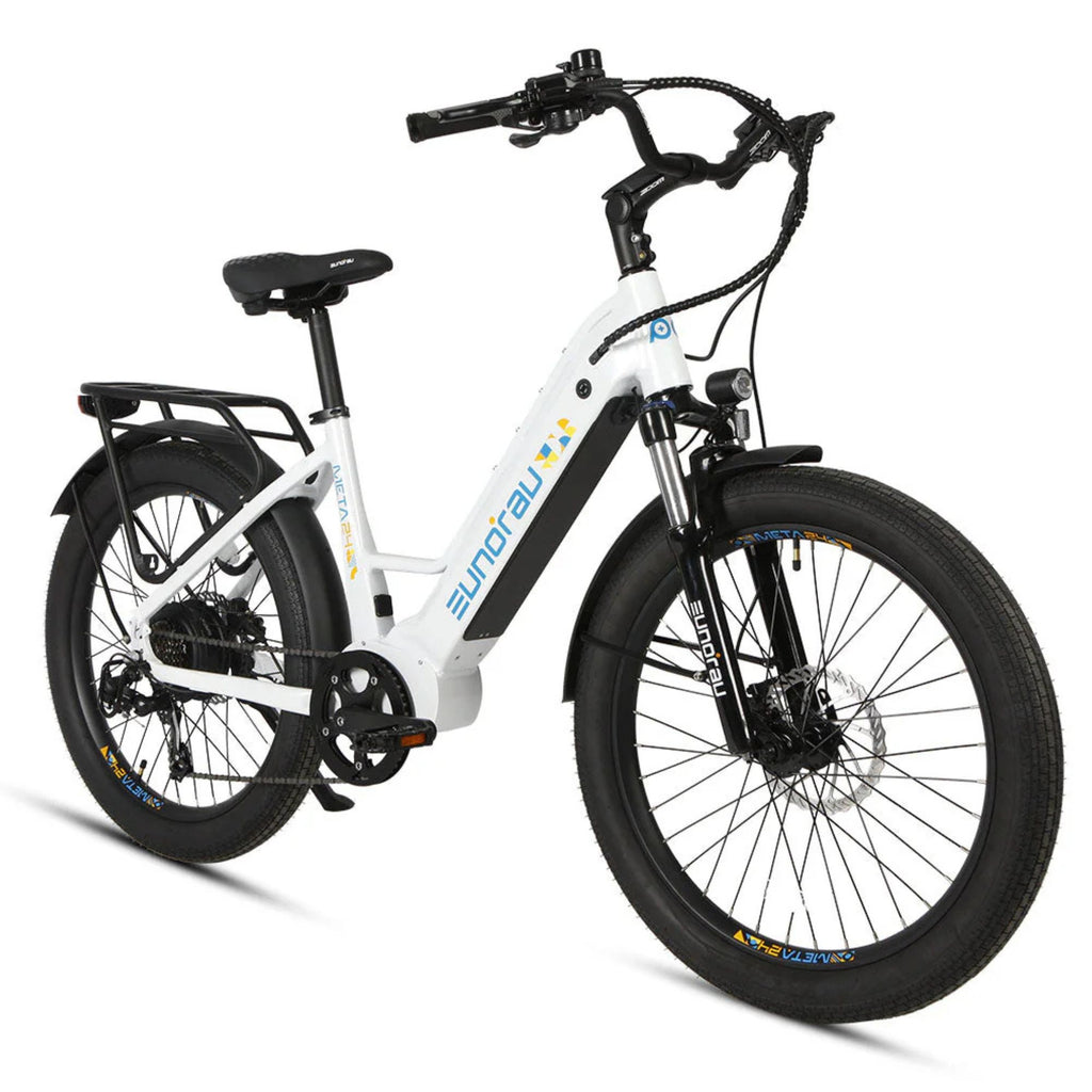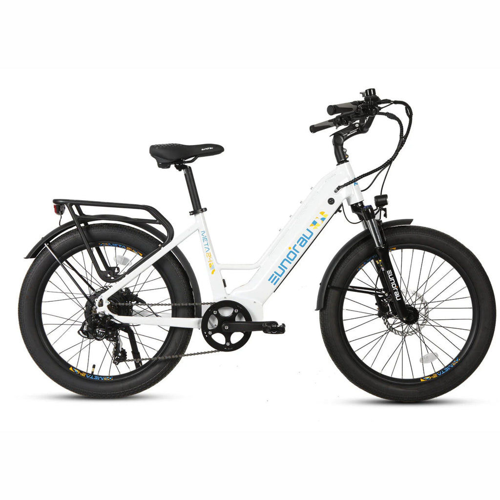 Experience the perfect blend of power, comfort, and innovation with the Eunorau 500W 48V META Step-Thru Electric Bike. Designed for the modern commuter, this e-bike offers a seamless ride through city streets and beyond. With its robust 500W hub motor and advanced torque sensor, the META ensures responsive acceleration and a natural pedaling feel. Whether you're navigating daily commutes or embarking on weekend adventures, this bike delivers unparalleled performance and convenience.