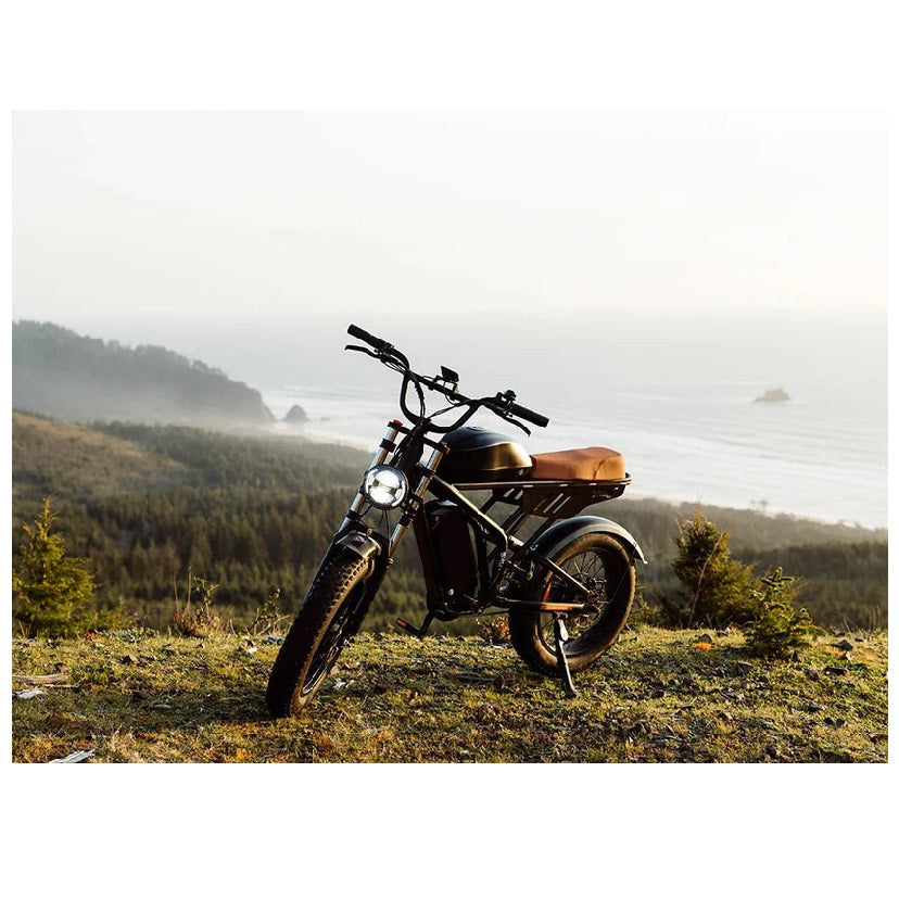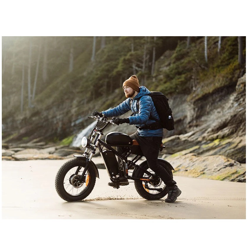 Trail conquerors will appreciate its fat 20″ × 4″ air-filled tires and full suspension, providing a cushioned ride over bumpy urban roads, gravel, or sandy terrain. Stopping is equally confident, with front and rear hydraulic disc brakes providing responsive and heat-resilient braking performance.