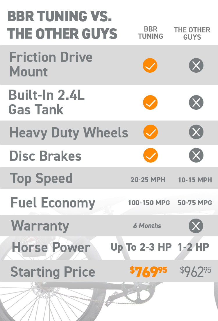 The BBR Tuning Lock-n-Load 4-Stroke bike engine kit comes equipped with a friction drive assembly that makes assembly that makes installation easy.