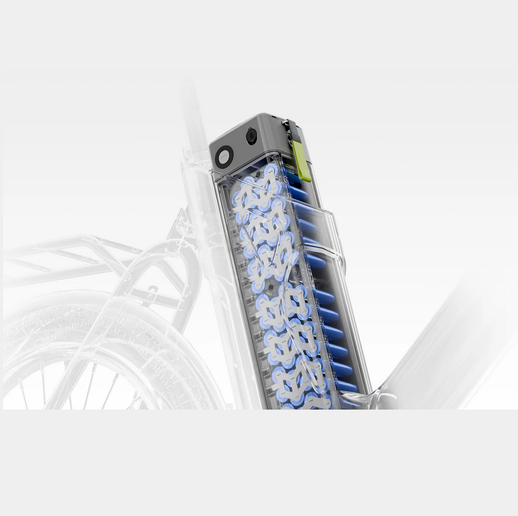 This bike's battery features an IP65 waterproof rating and is equipped with a bottom drainage channel, ensuring safety even in unforeseen heavy rainstorms.