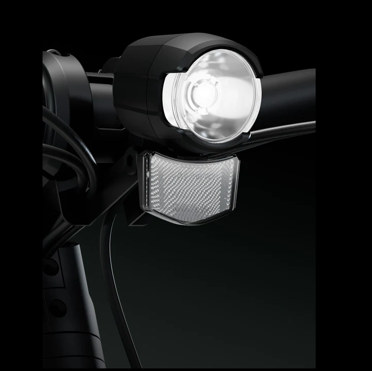 Frame-integrated taillights illuminate automatically upon braking, enhancing safety and visibility for night riding.