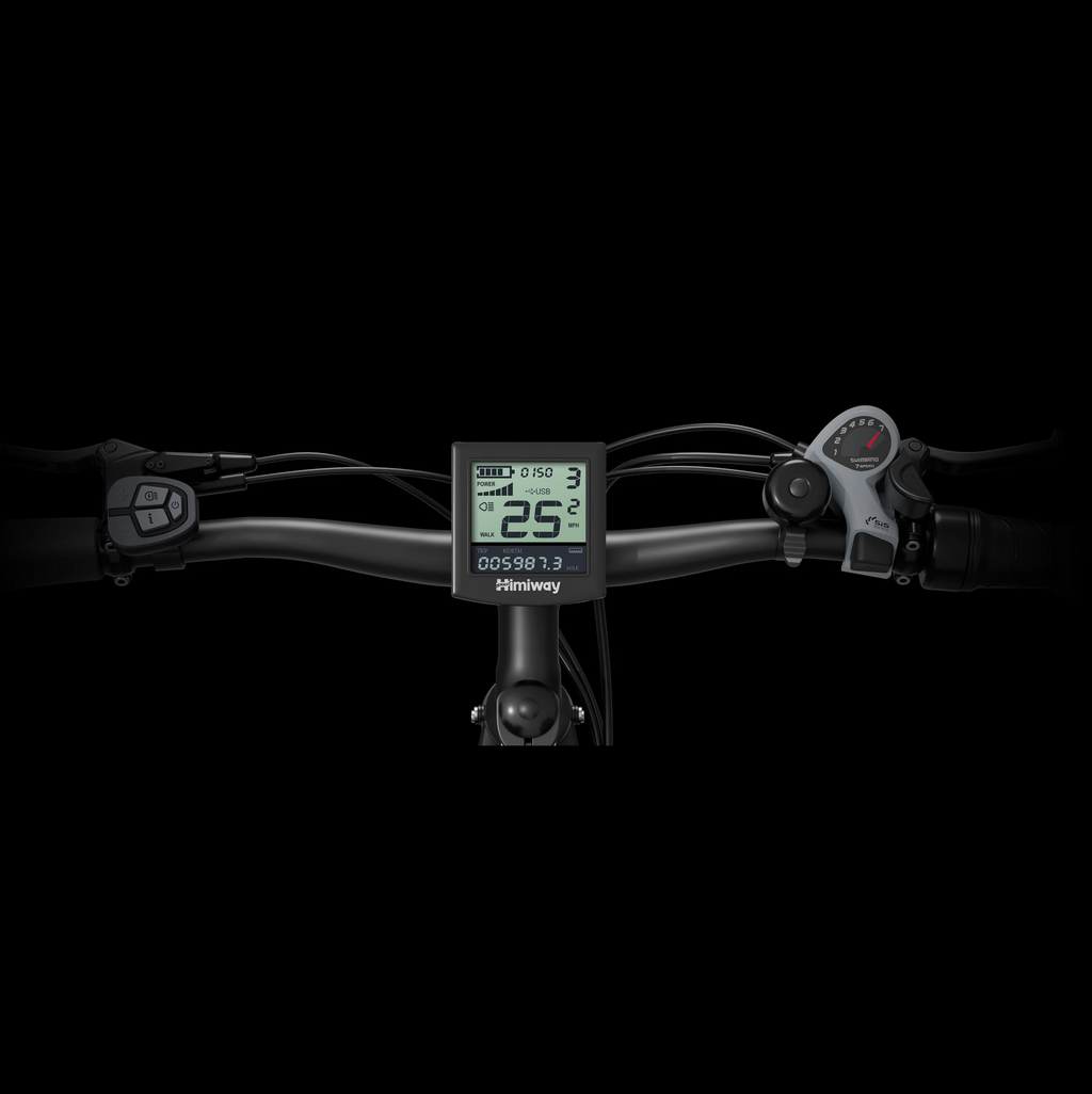The Backlit LCD display provides information on speed, mileage, power, etc.
