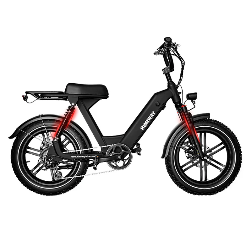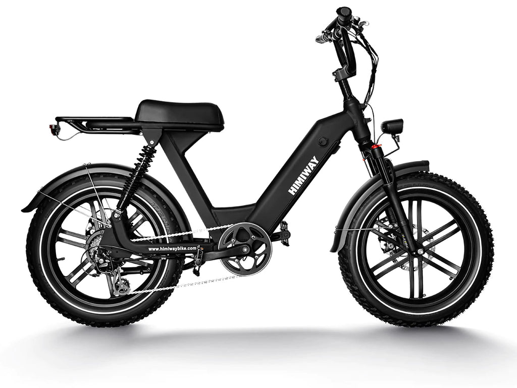 Himiway uses high-quality 6061 aluminum for the frame to give the bike unparalleled durability. The moped frame design is friendly to heavier riders and riders with physical limitations, making it easier for everyone to get on and off their bikes. The integrated design gives you protection from inclement weather, eliminating up to 98% of common mechanical failures.