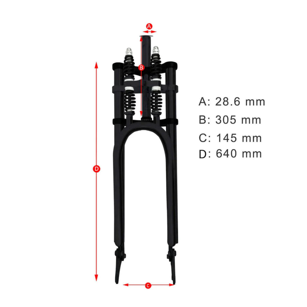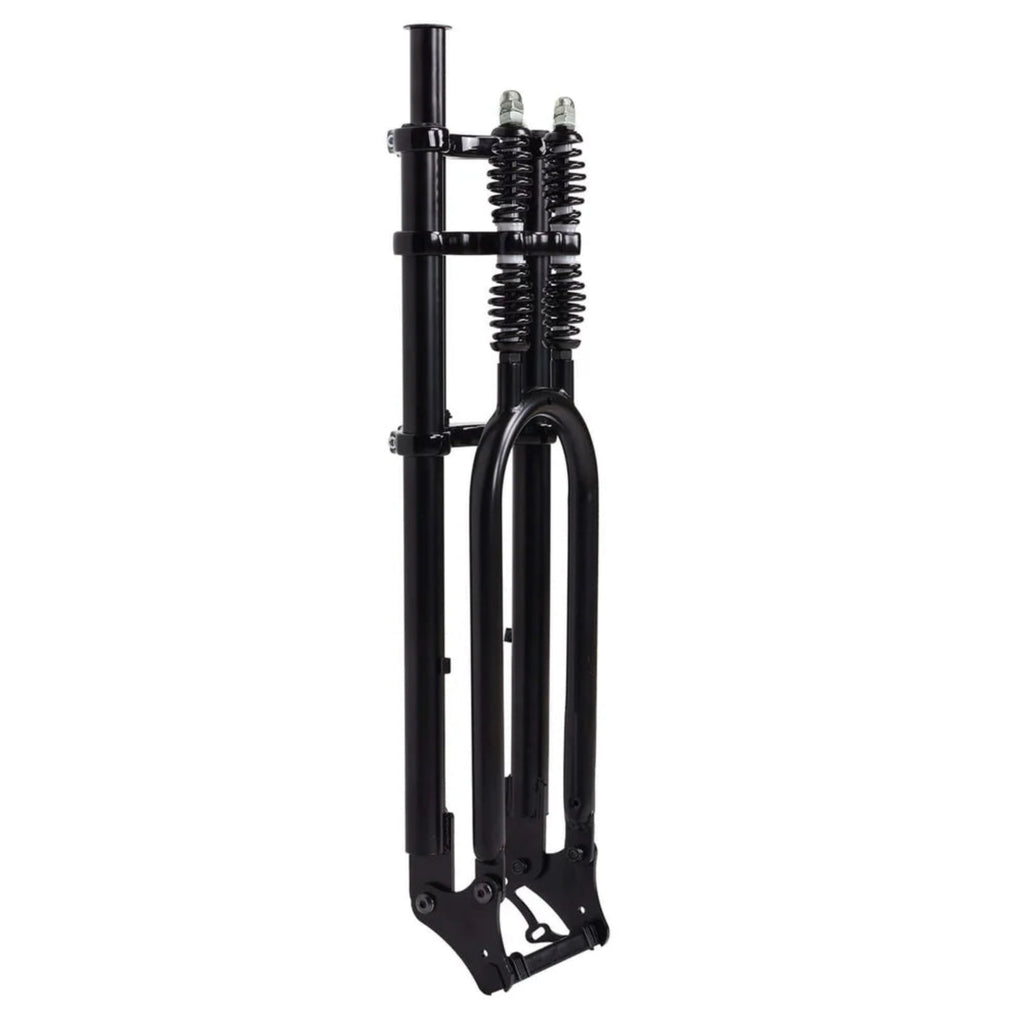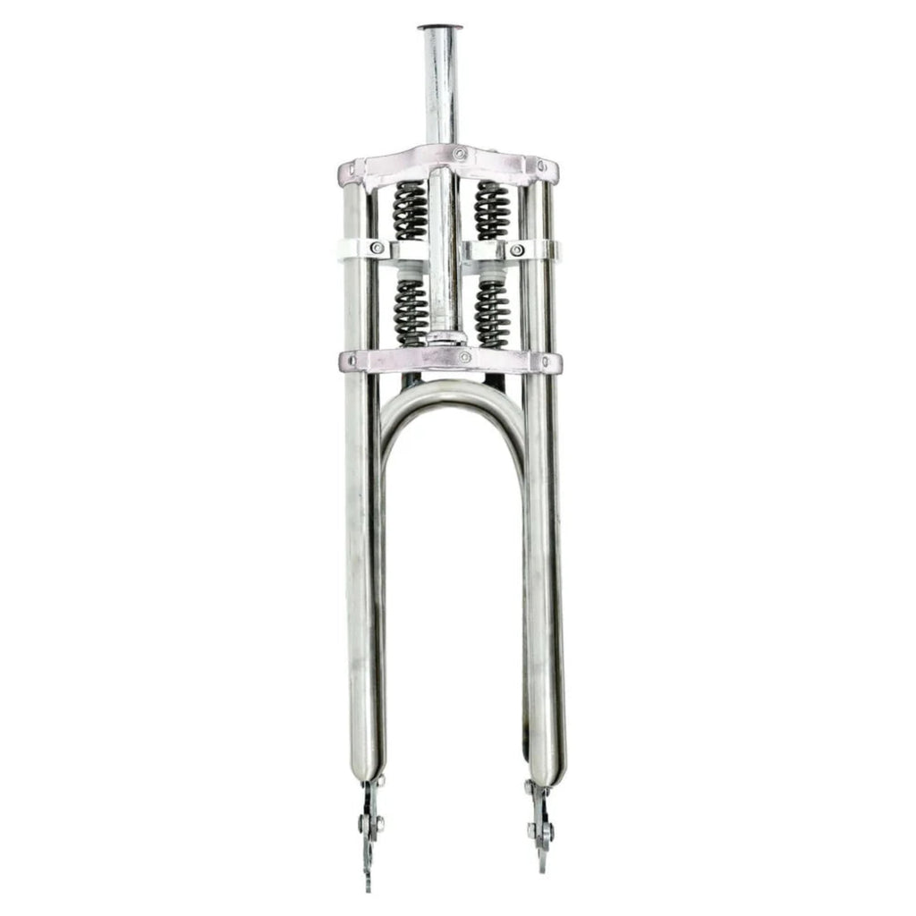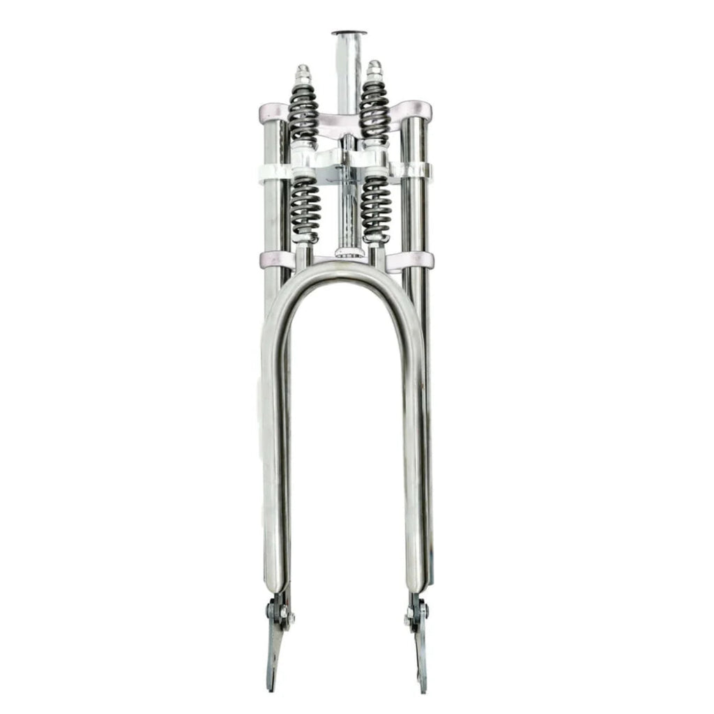 Upgrade your ride with the Tracer 26'' Over and Under Dual Spring Adjustable Classical Fork for Disc Brake 1-1/8" (28.6mm) designed for serious builders and riders who demand comfort, control, and classic style. With dual spring suspension, disc brake compatibility, and fat tire support, this fork gives your cruiser or motorized bike a smooth ride and aggressive stance.